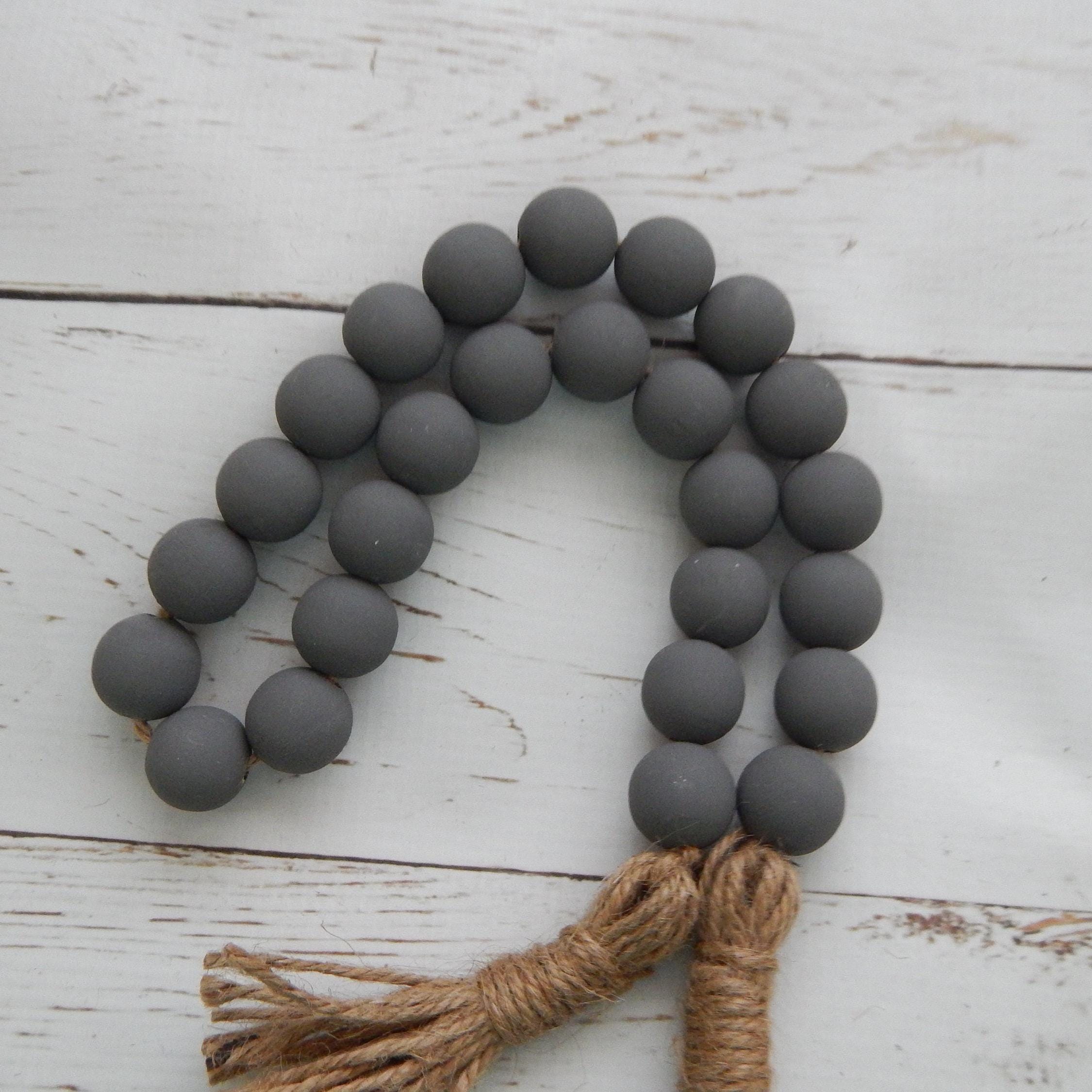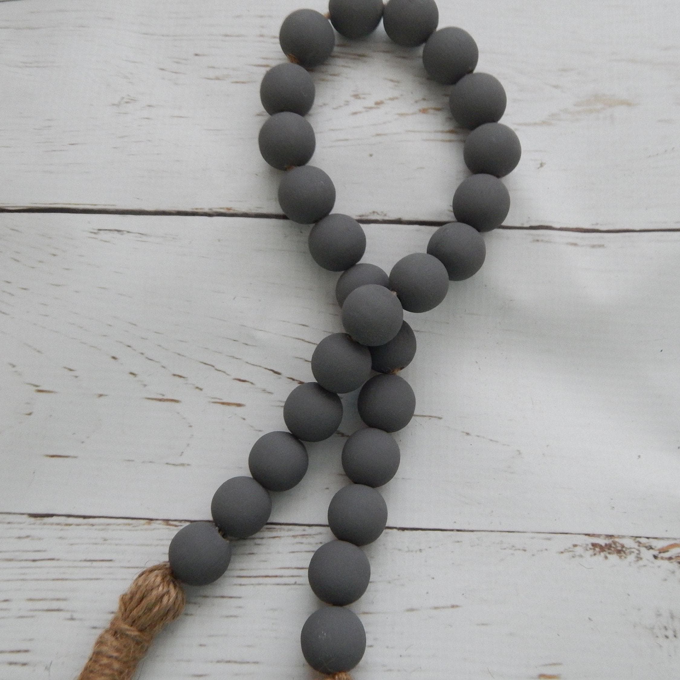 Dark gray wood bead garland with jute tassels for your home. The color will match any home decor you have and adds a fun unique touch to any room. Perfect for anytime of the year.
